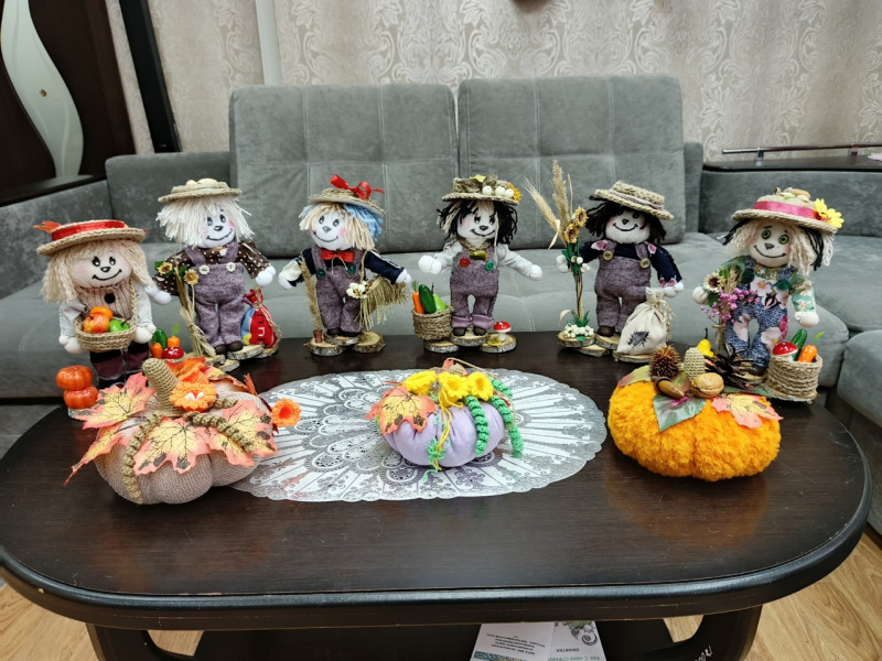 В отделении дневного пребывания отдыхающие своими руками сделали миниатюру в виде милого пугало.